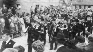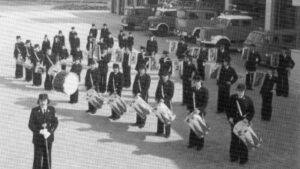 Von da ab wurden nun laufend Feuerwehrfeste besucht und unser Trommlerchor erfreute sich größter Beliebtheit. Nachdem Xaver Grumann nach Jahren zurücktrat, übernahmen Martin Willert und bald darauf Georg Bleimüller die Leitung des Spielmannszuges. Die Kameraden Reinmann Tobias, Bleimüller Georg und Schuster Anton taten sich in den ersten Jahren für den Spielmannszug besonders hervor. Bleimüller Georg schenkte dem Spielmannszug am 7.4.1953 die erste Flachtrommel. Das war für die Herzogenauracher Feuerwehr ein herrliches Geschenk, wenn man bedenkt, dass zu dieser Zeit in der Vereinskasse Ebbe war. Kamerad Anton Schuster reparierte ange Jahre kostenlos die defekten Trommelfelle. Für die Anfertigung der Trommelstöcke erklärte sich Heydt Andreas bereit.