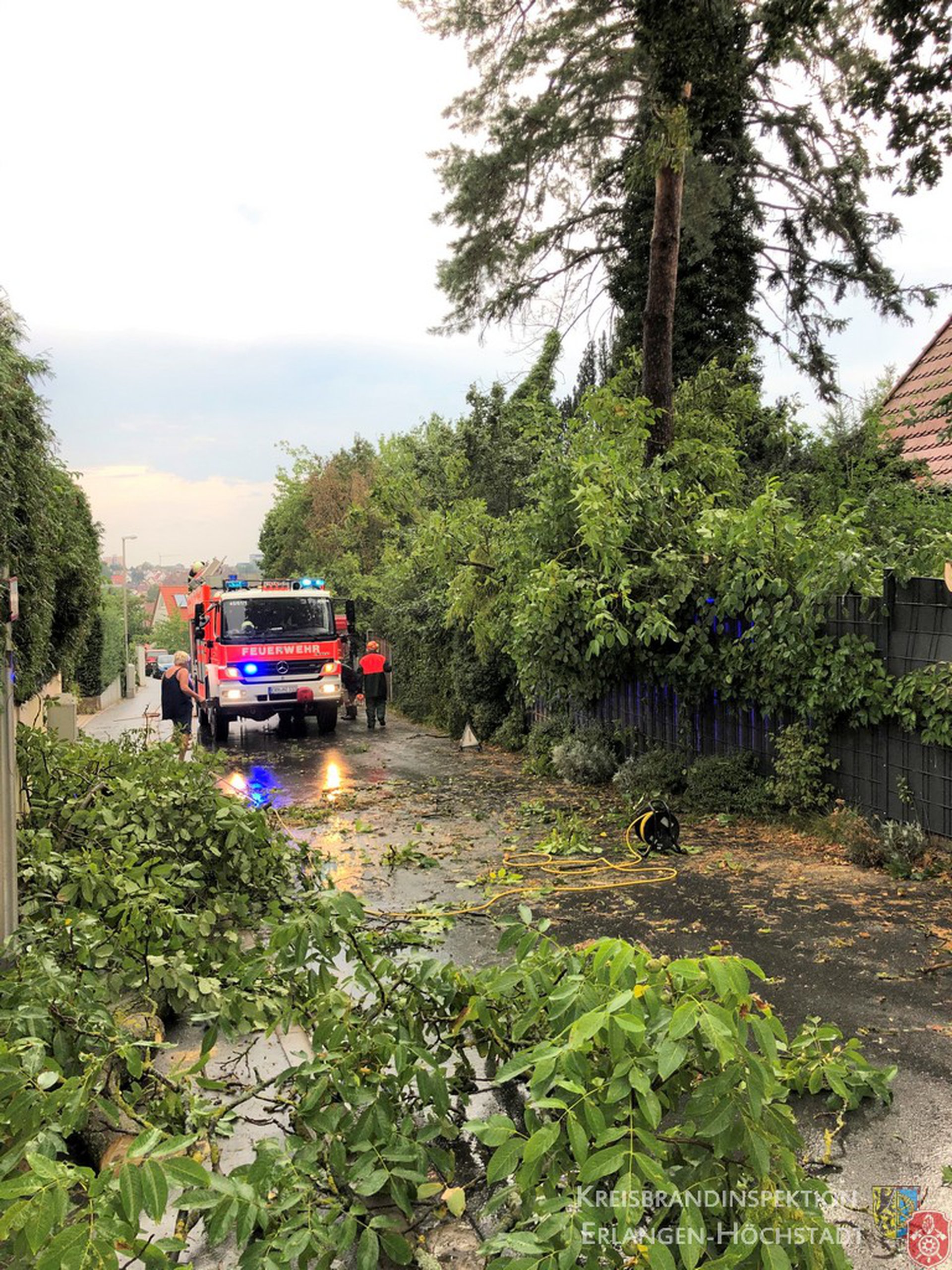 „Erstmalig kam ein Flächenlagekonzept zum Tragen, welches für solch hohe Einsatzaufkommen Einheiten aus verschiedenen Teilen des Landkreises vorsieht. Zwölf Feuerwehren mit definierten Zügen des Hilfeleistungskontingents als auch das Technische Hilfswerk Baiersdorf wurden ins Stadtgebiet Herzogenaurach alarmiert, um dort unterstützende Hilfe zur Bewältigung der Einsatzstellen zu leisten.“